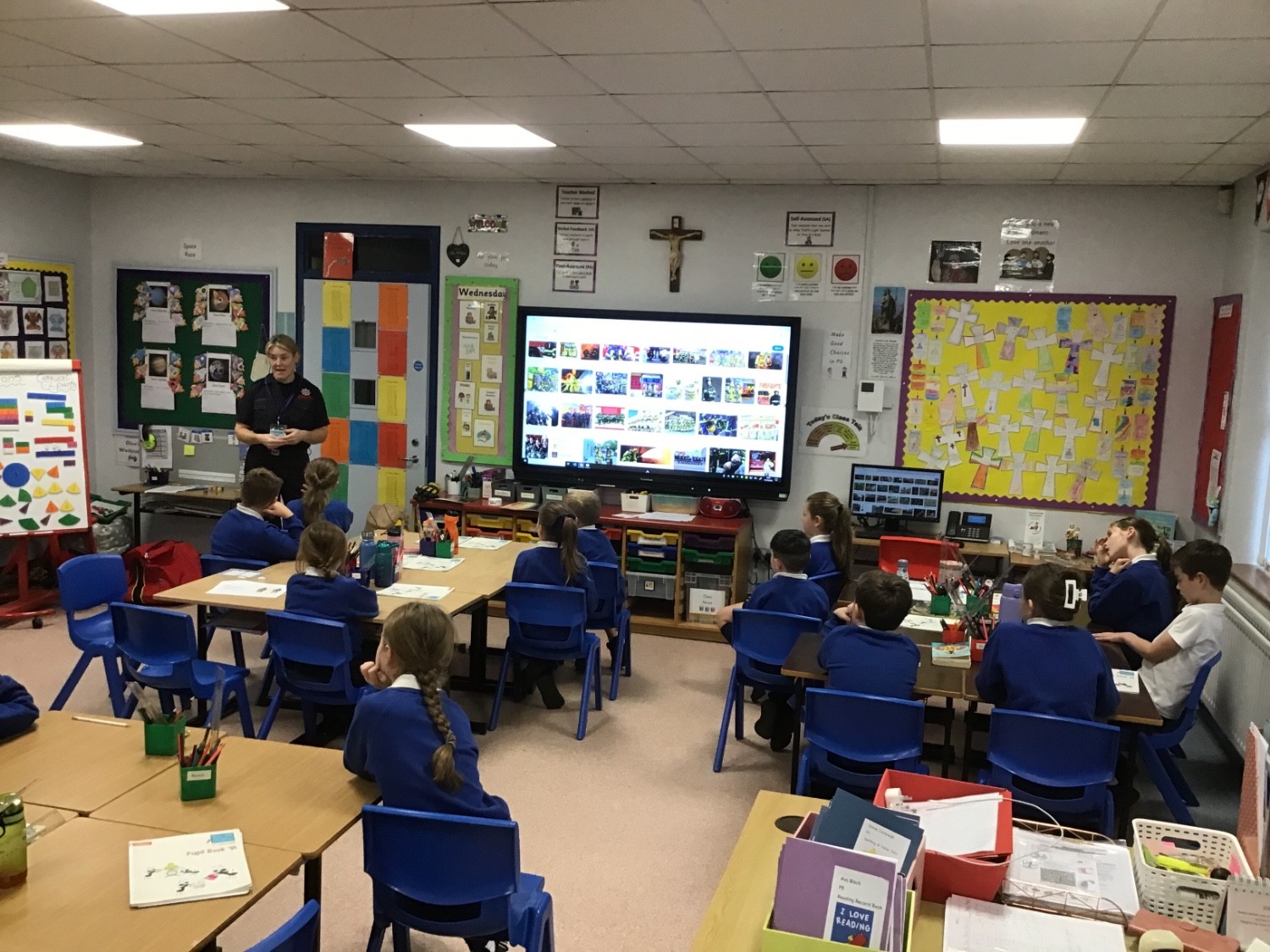 P5 had a visit from Firefighter Fagan this morning. She presented very important messages about fire safety. She used the word ‘STOP’ to remind the class of the main points. S - smoke alarms T - Test on Tuesdays O - obvious dangers. P - plan