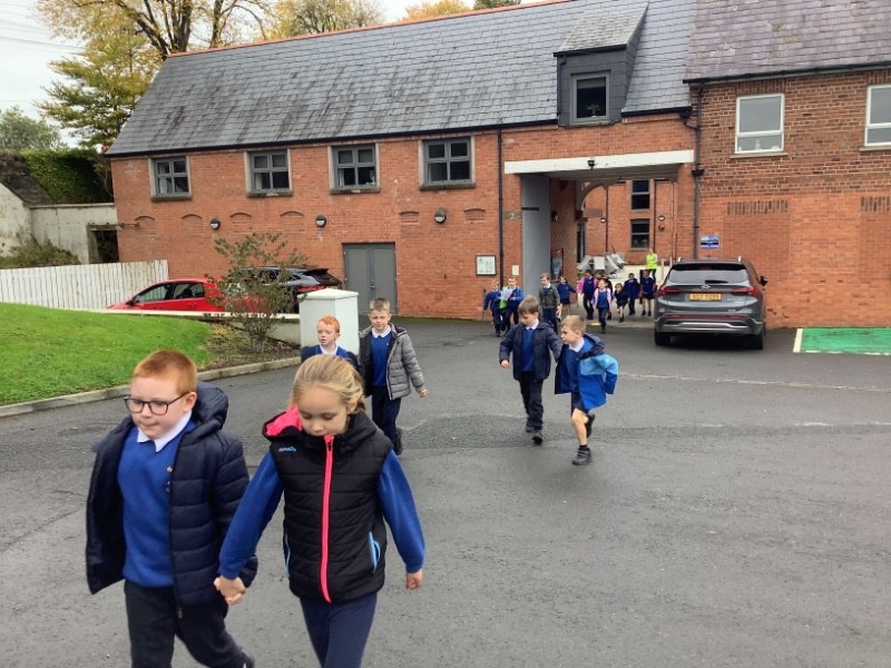 On Wednesday 1st October P3/4 went to Benburb Priory as part of our WAU topic ‘Our Community and School’. We had a fantastic day. We did some art activities, had a snack before we went exploring the grounds. We got to meet Catherine of Argyle, a Queen of Benburb Castle who read a story about the history of the Castle. We met a Queen Fairy who guided us around the Fairy trail with a fairy chant. We met Vera the beekeeper who told us all about bees and how they build honeycomb in the hive. She also told us the importance of protecting ourselves around bees. We went to the games room and played floor games in our groups which was great fun. At the end, we went into the Chapel where the Saint Carlo Acutis relic was present and we all said prayers together. Thank you to all the volunteers at the Benburb Priory for taking great care of us and to Benburb Shop for treating the children with a lovely goodie-bag. Children and staff had a fantastic day.